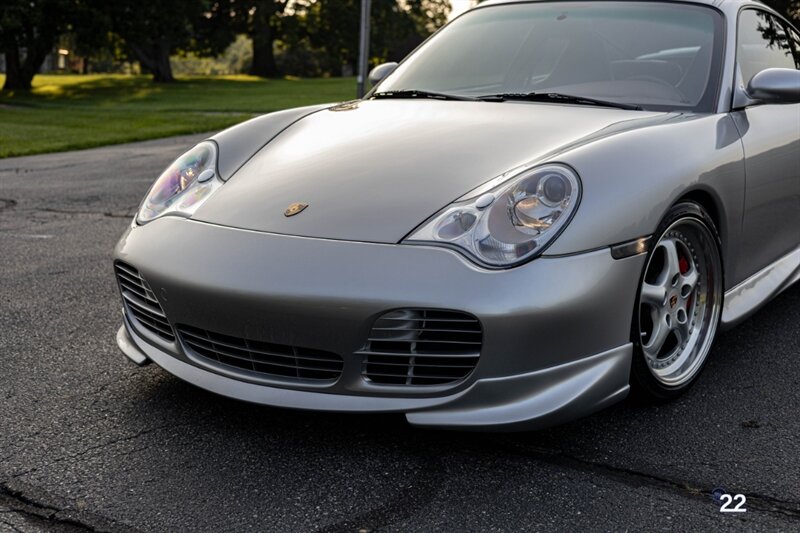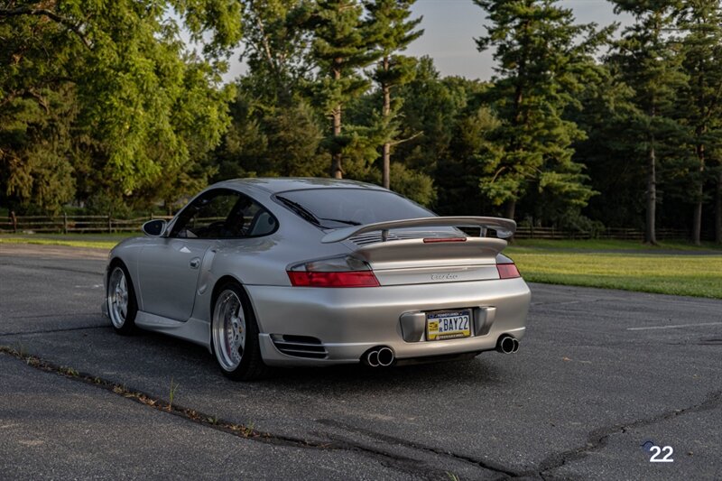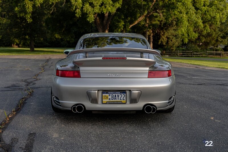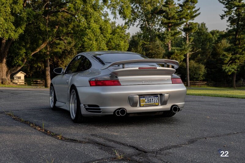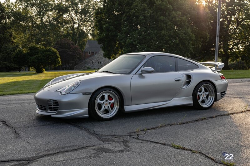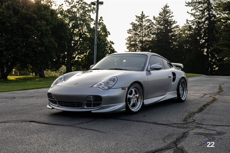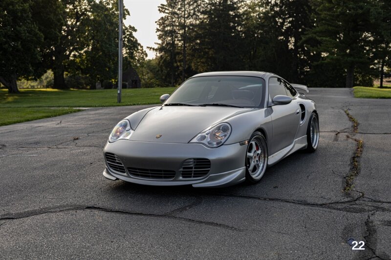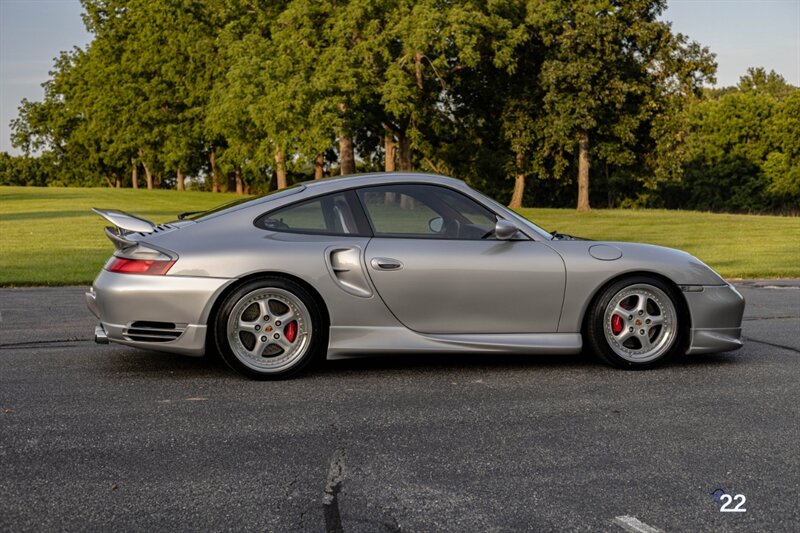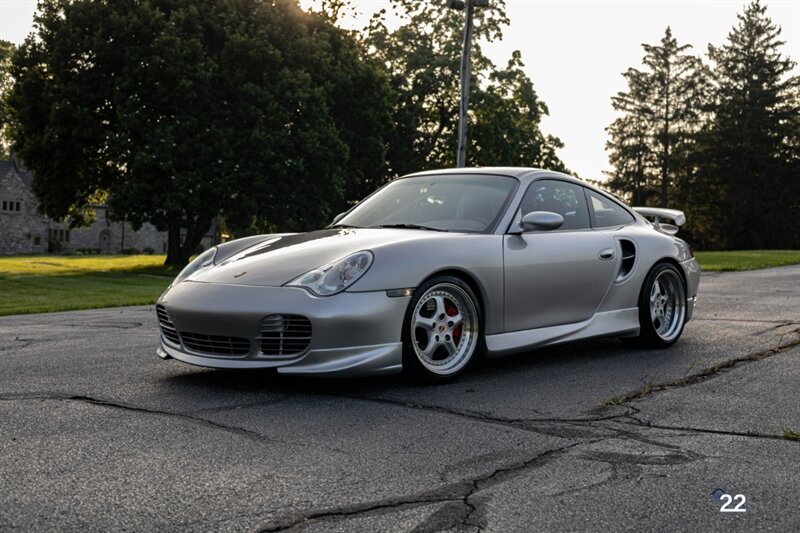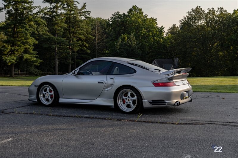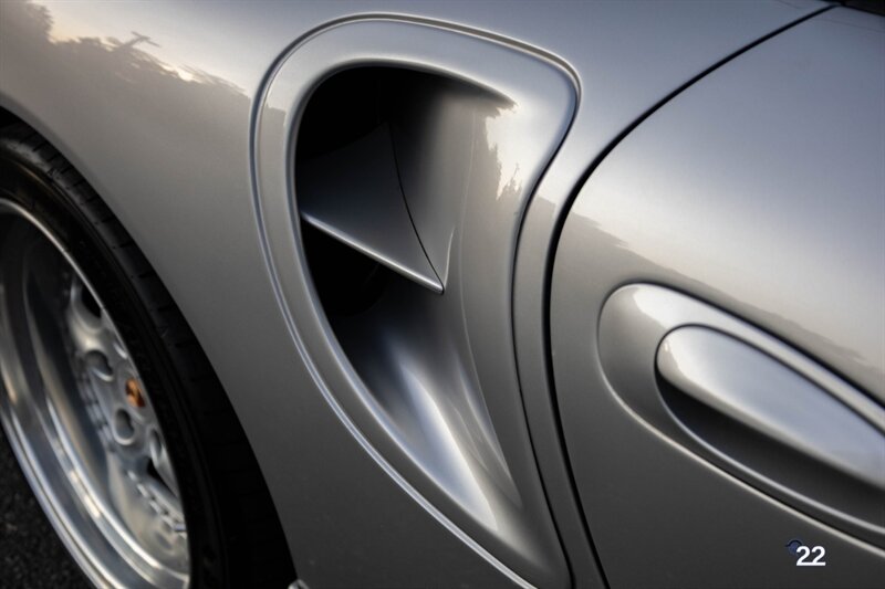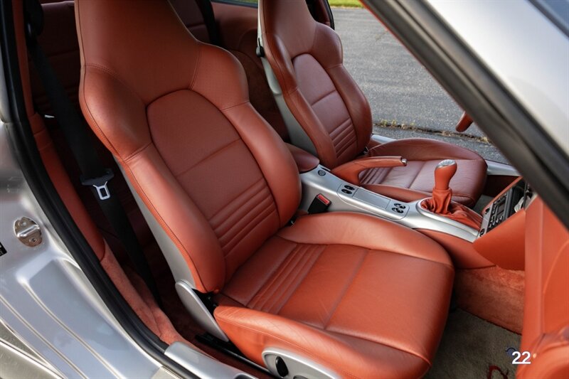 2001 Porsche 911 Turbo with a 6 speed manual transmission, in Arctic Silver with full Boxster Red Special leather interior. A stunning color combination with hard to find options on a 996 Turbo.