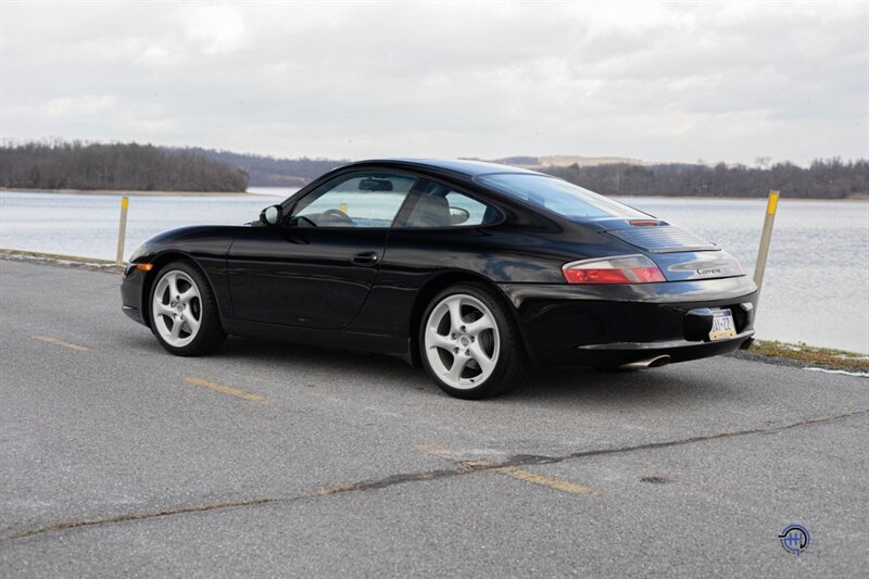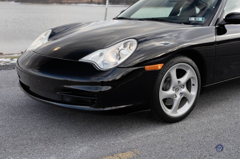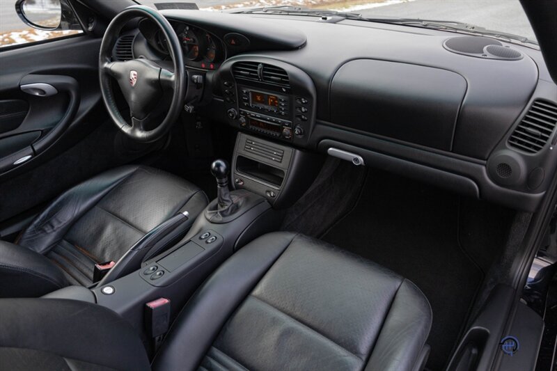 2003 Porsche 911 C2, 6 speed manual in Black with Black leather interior. Options include heated front seats, 18" Turbo II wheels, HiFi sound package, Xenon headlights and Black floor mats.
