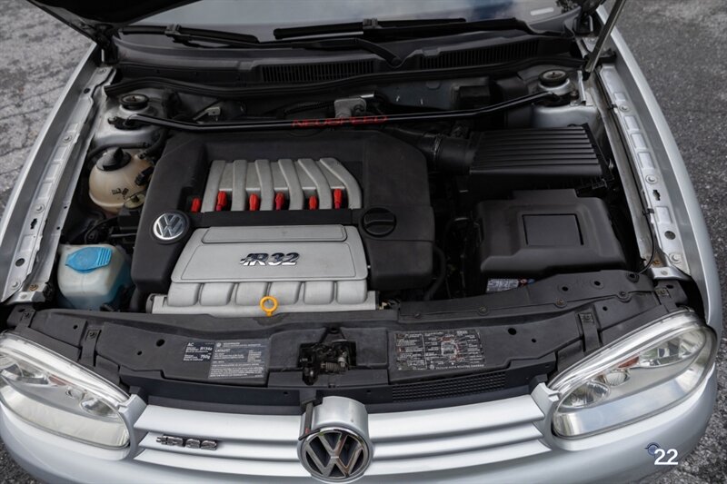 2004 VW R32 in Reflex Silver with Black leather interior. 6 speed manual transmission and AWD make this 3.2L R32 unique and a blast to drive. Only 5,000 brought to the USA of which 1,750 were in Reflex Silver.