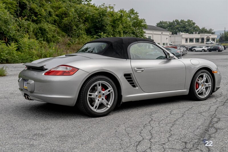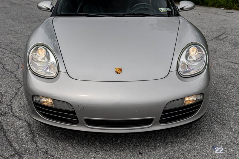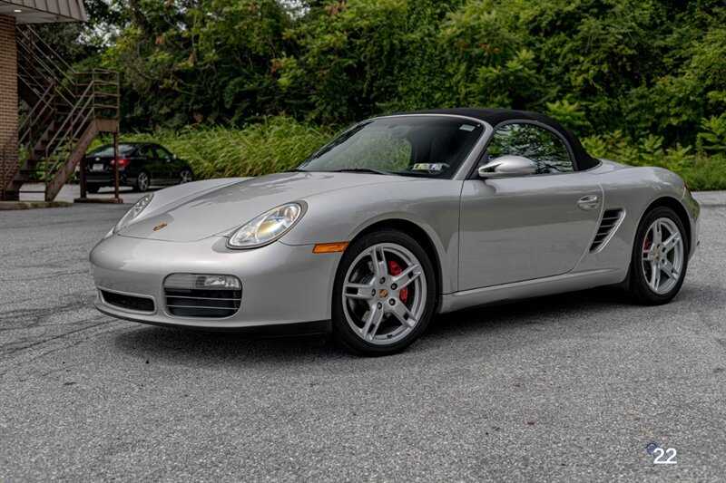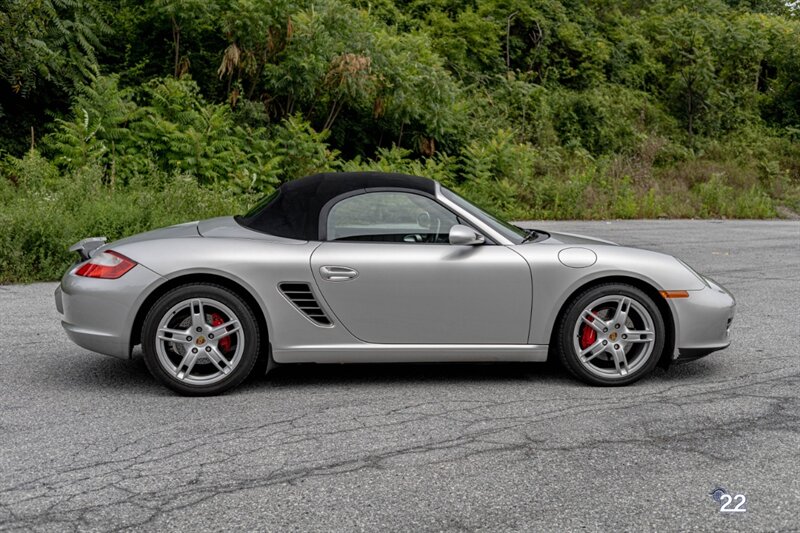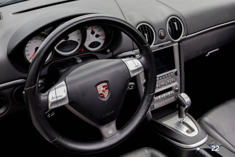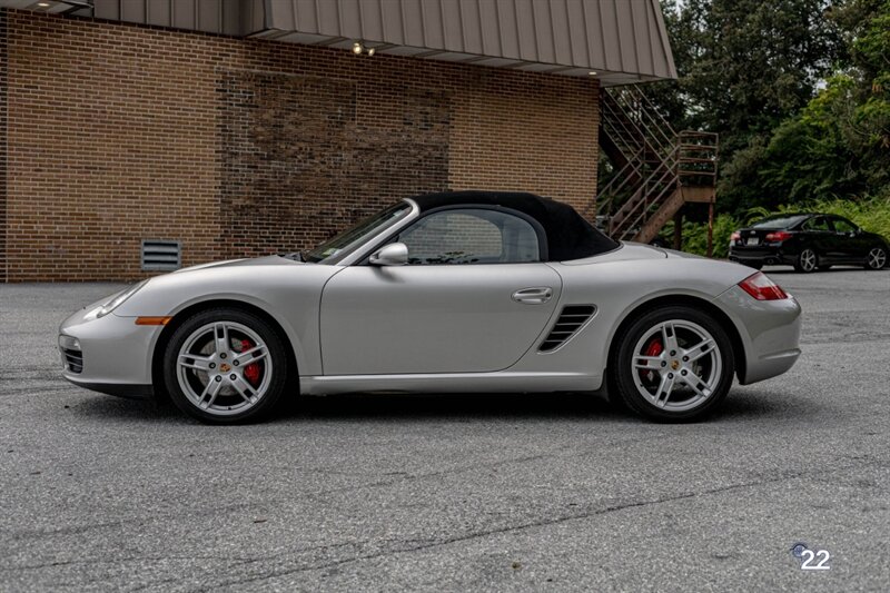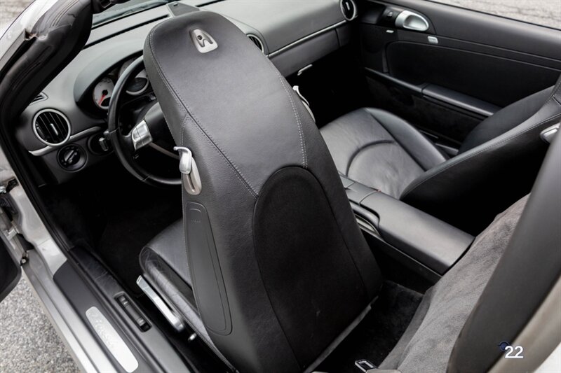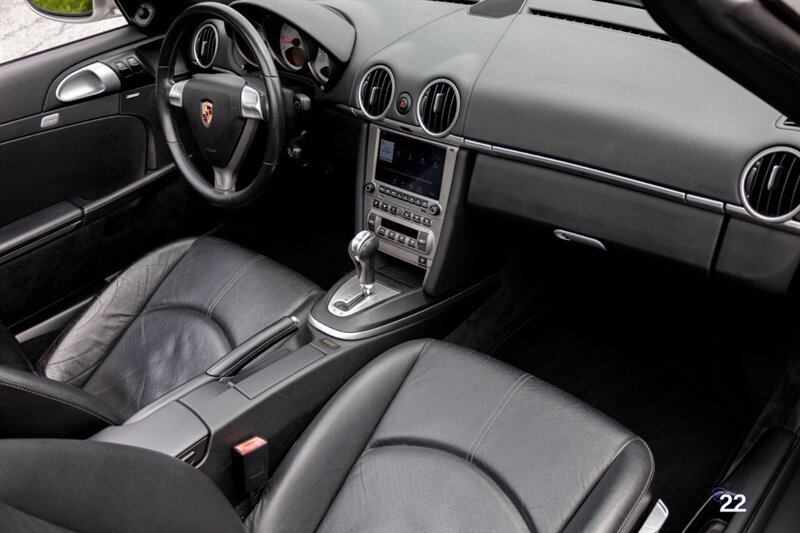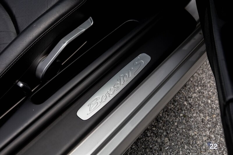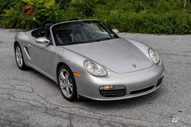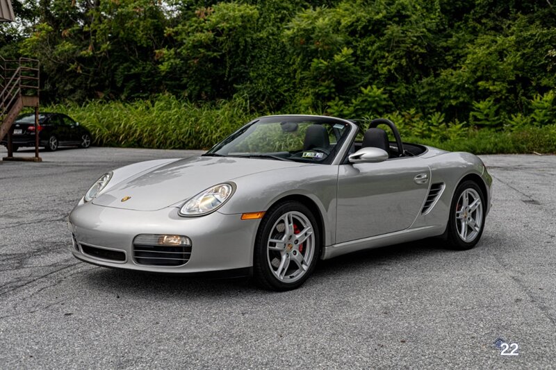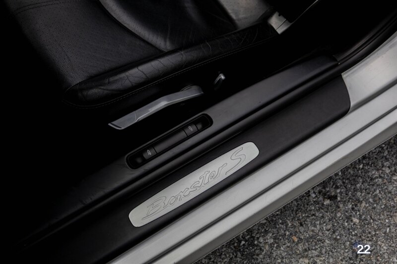 2006 Porsche Boxster S in Arctic Silver with Black leather interior. This Boxster S is optioned with a Tiptronic automatic transmission, heated front seats, Porsche wind deflector, automatic climate control, Bose sound, self-dimming mirrors, rain sensing wipers and xenon headlights.