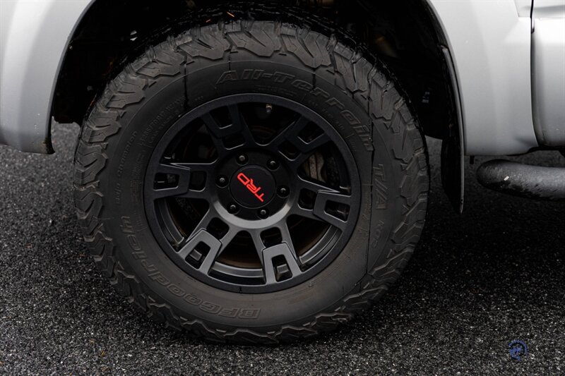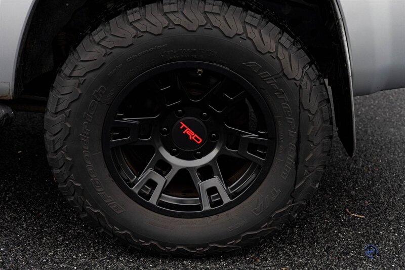 I added a few things over the years to make the appearance better, including TRD Pro replica wheels, BFGoodrich K02 tires, American flag rear window stickers, Bilstein 4600HD shocks and struts along with a .75" spacer lift front and back. I also added a Bluetooth phone module to the stock radio to be able to play music. I painted the front grill black with Plasti-dip (could use a respray).