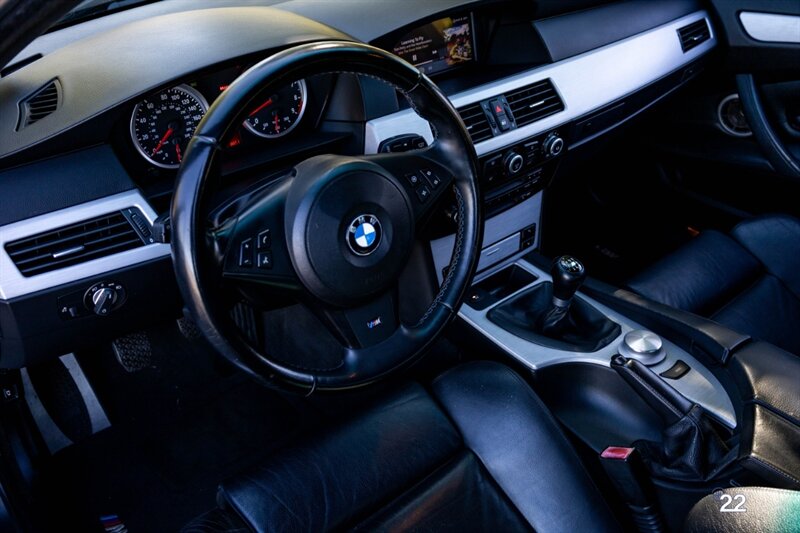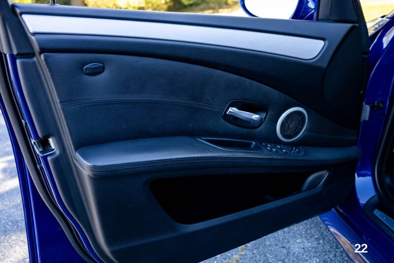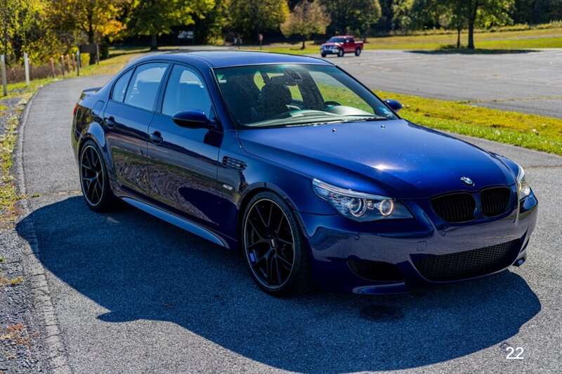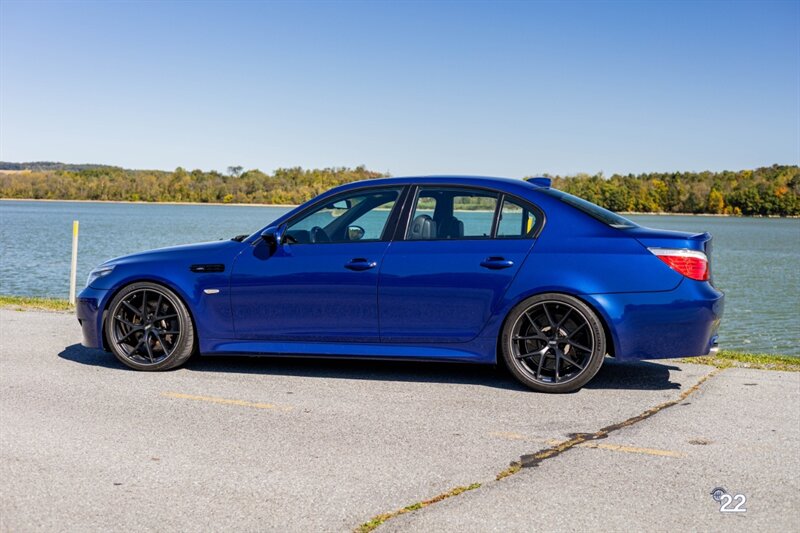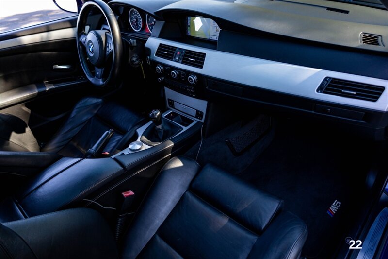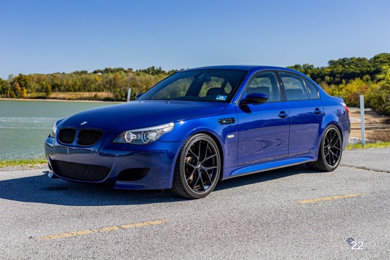 2008 BMW E60 M5, V10 with a 6 speed manual transmission. Painted in stunning Interlagos Blue with Black leather interior, this car is 1 of 97. Uniquely optioned with Brushed Aluminum trim, special order non-leather dash and non-alcantara headliner, Soft-close doors, Individual audio system, Heated front seats/power/memory, rear and side sunshades, Adaptive/Xenon headlights, Comfort Access and Navigation.