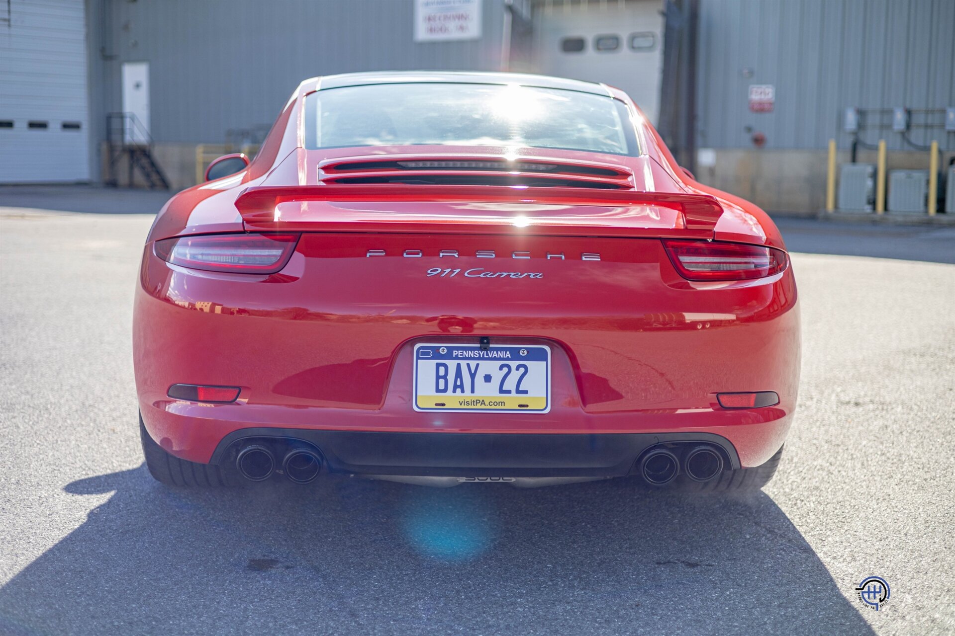 The full front end of this 911 is covered in PPF (paint protection film) by Xpel. This includes the front bumper, hood, fenders, headlights, side mirrors and front portion of the roof.