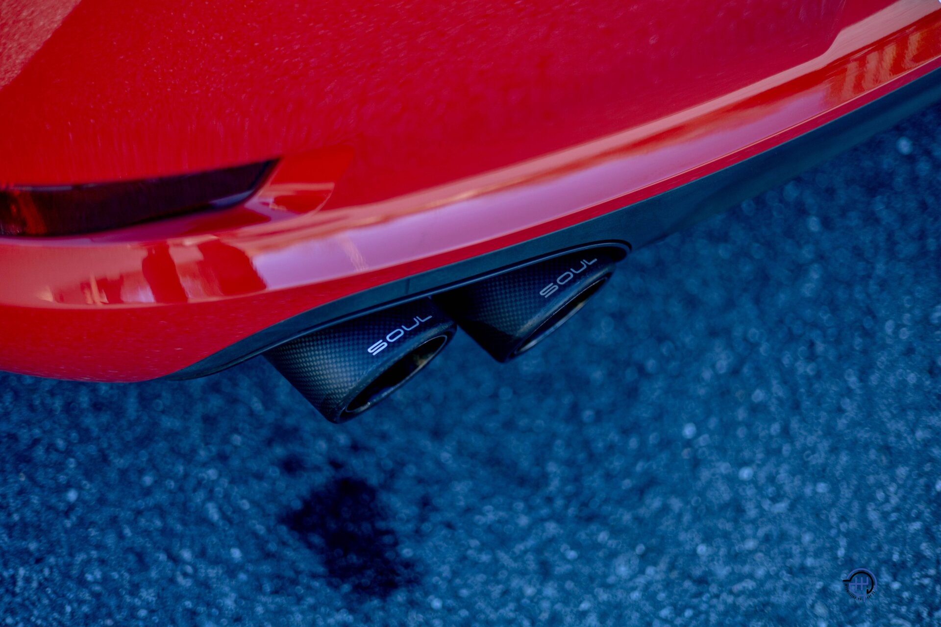 There are three aftermarket modifications done; Soul valved exhaust system ($5,200), rearview camera and clear side markers in the front bumper. The Soul exhaust is valved which allows you to change the tone and volume of the exhaust noise with a remote. It really opens up the 3.4L engine's noise. The stock exhaust is included with the sale.