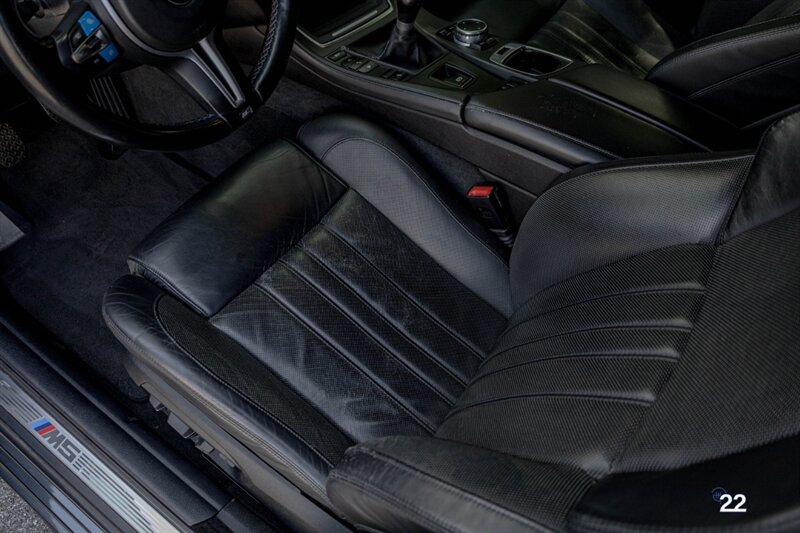 2016 BMW M5 Competition in Singapore Gray Metallic with a 6 speed manual transmission. This LCI, Competition, 6 speed manual M5 is one of only a few ever made in this combination. Options include; Black extended merino leather, Competition package, Executive package (heated steering wheel, soft close doors, rear sunshades, front vented seats, active front seats, heated rear seats, 4-zone climate control, adaptive full LED headlights, auto high beams and head-up display) along with Black kidney grilles.
