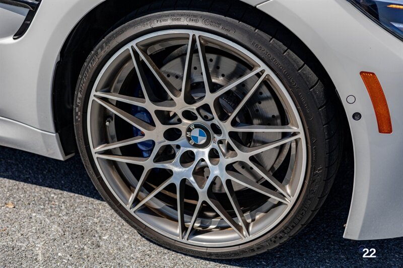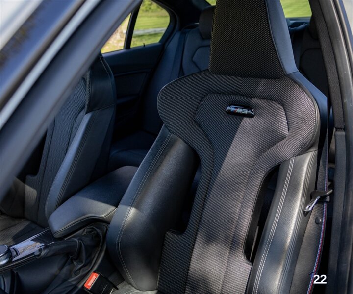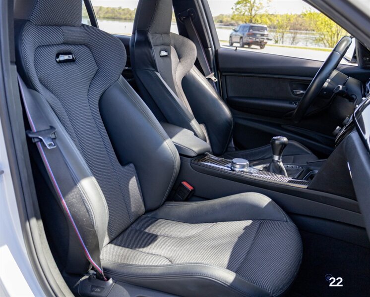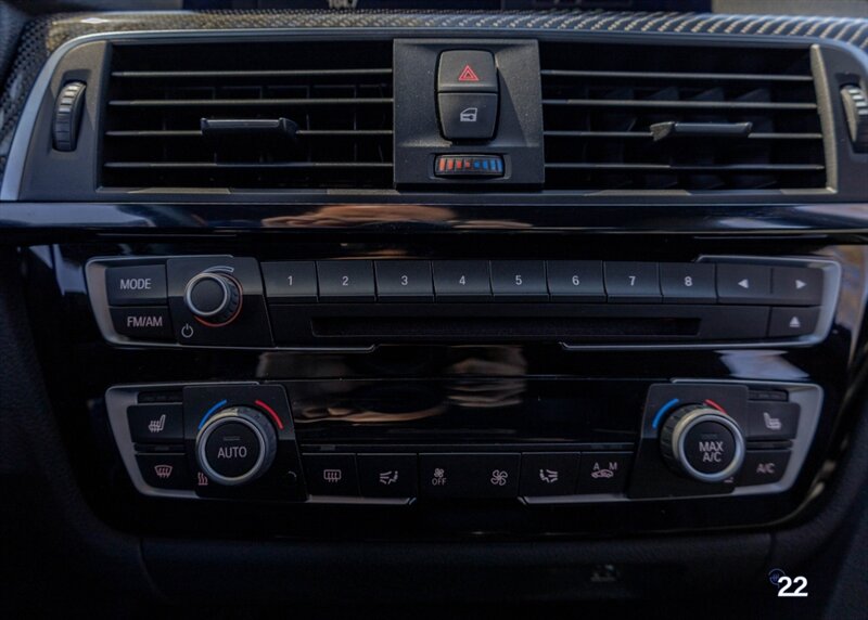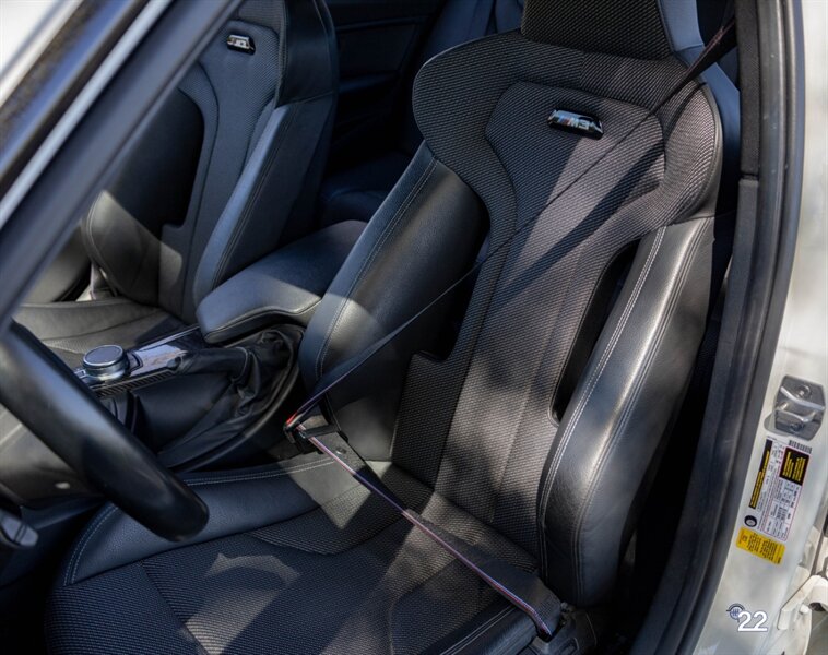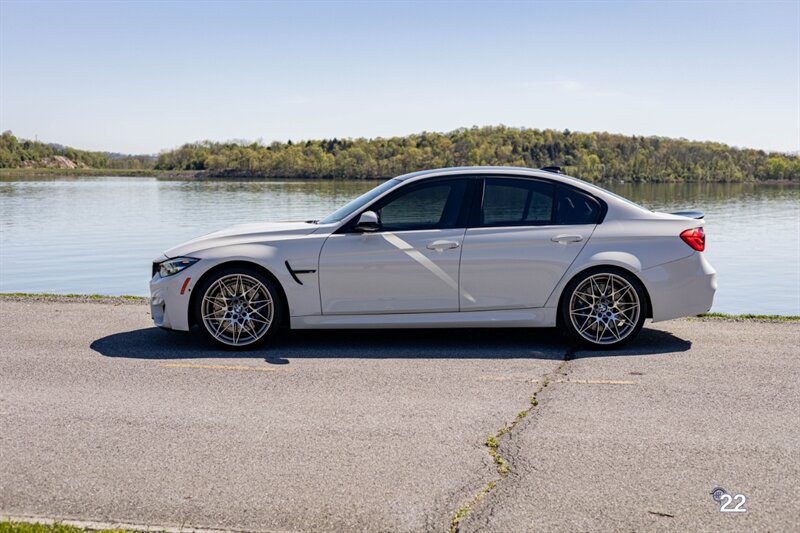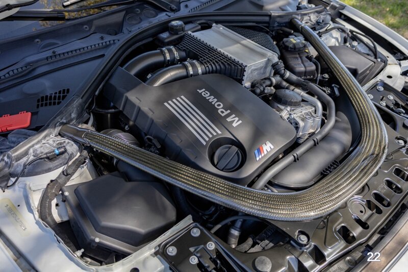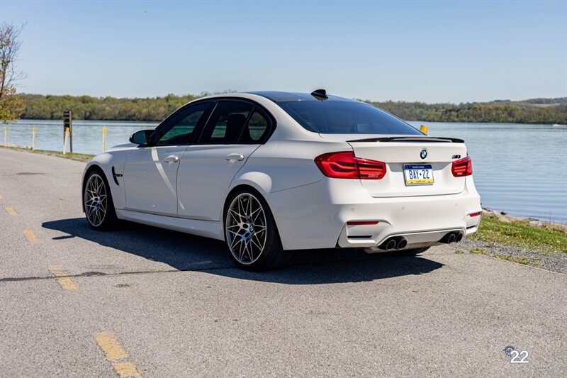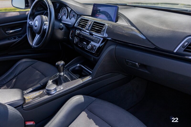 2018 BMW M3 in Alpine White with Carbon Structure/Leather interior. This 6 speed manual M3 is optioned with the Competition package (20" 666M wheels, adaptive M suspension and shadowline exterior trim), Carbon fiber roof, Front power seats with memory and heating, Carbon fiber interior trim, Driver assistance package, Executive package (heated steering wheel, park distance control, adaptive full LED headlights, auto high beam, side and top view cameras, parking assistance and heads up display), Active blind spot monitoring, Apple Carplay, Wireless charging and M Performance rear carbon fiber rear spoiler.