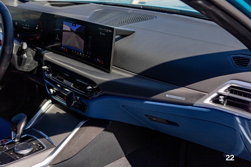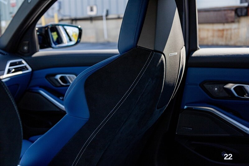 2025 BMW M3 Competition RWD, Blue Bay Lagoon with Full Fjord/Black leather interior.